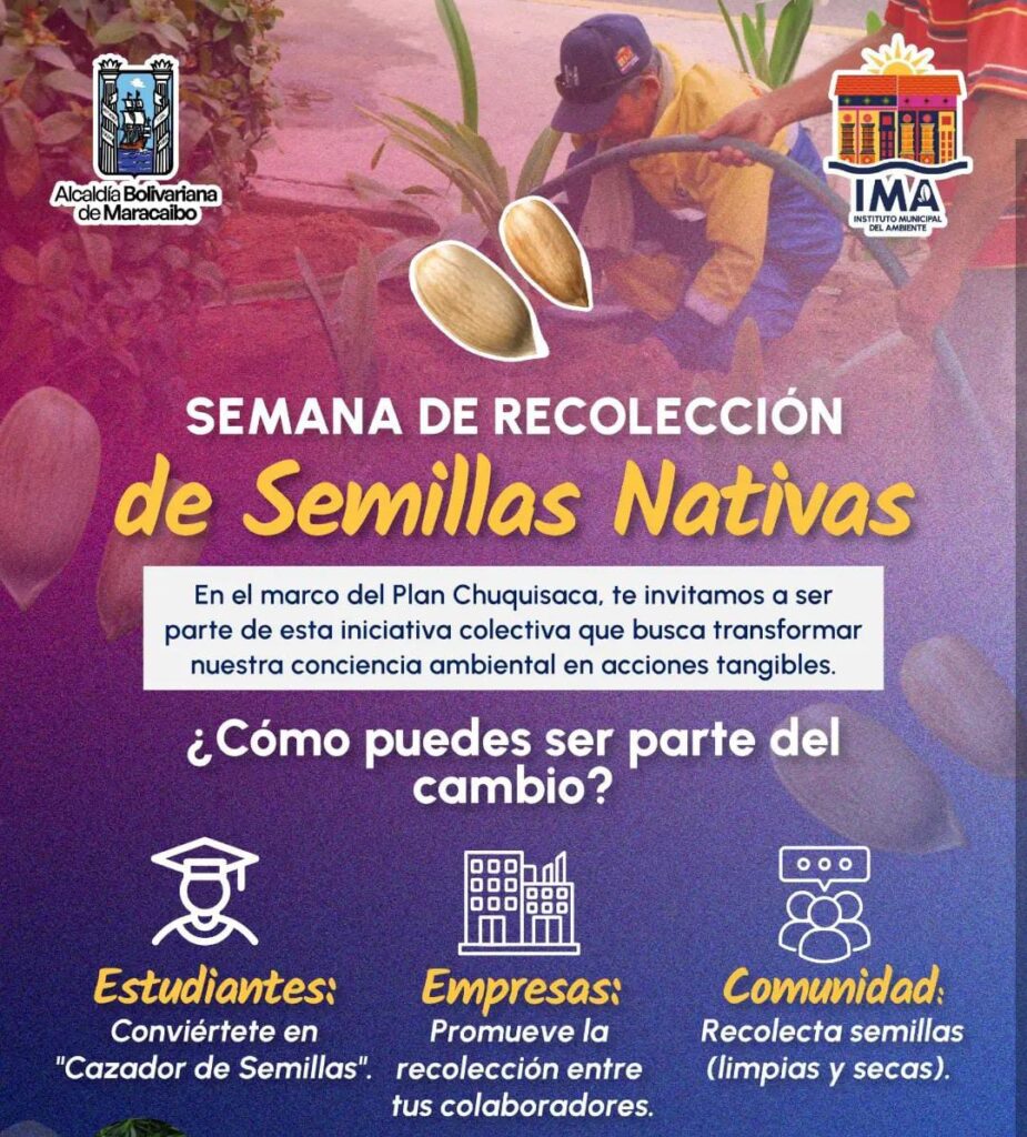 Con el propósito de promover la conciencia ambiental y fomentar acciones concretas para la recuperación de espacios verdes, la Alcaldía Bolivariana de Maracaibo anunció la realización de la Semana de Recolección de Semillas Nativas, que se llevará a cabo del 11 al 18 de marzo, en el marco del Plan Chuquisaca.