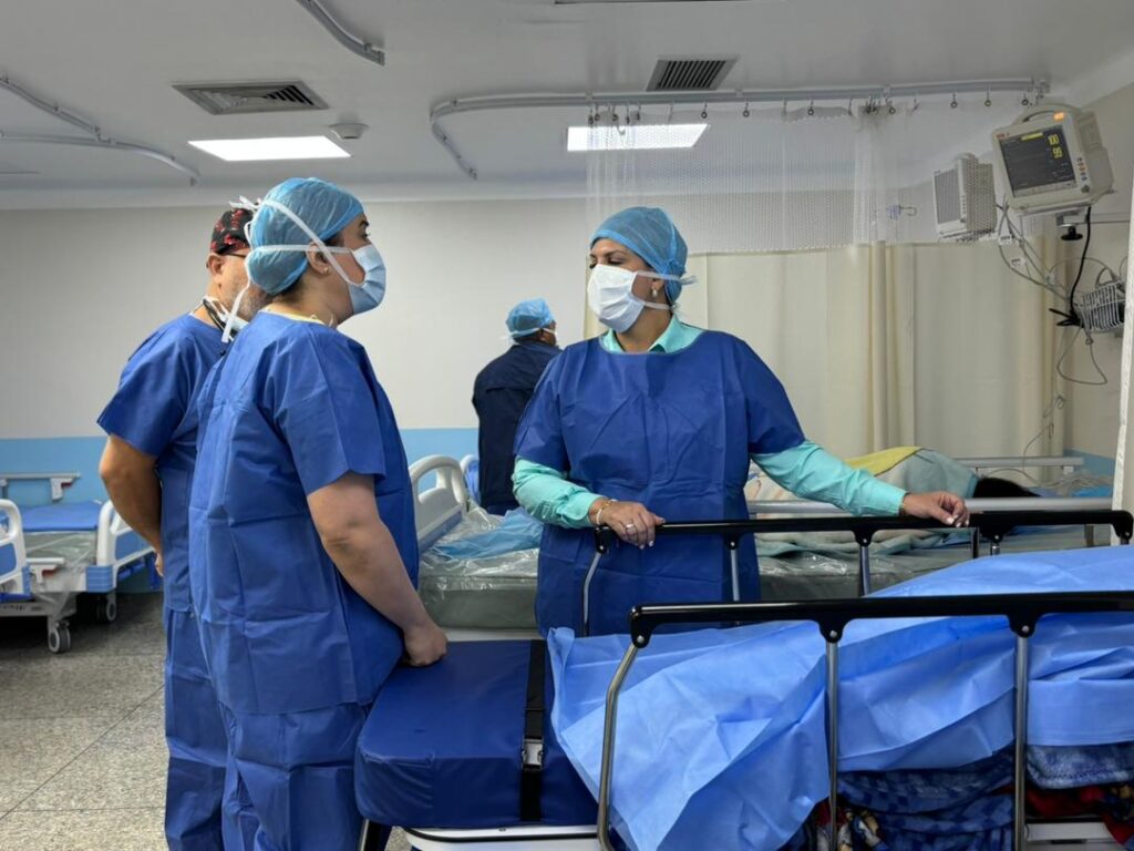 La primera Dama del Zulia, Roselyn López de Caldera, junto a la subsecretaria de Salud de la Gobernación, Hilda Ramírez, supervisó el desenvolvimiento del plan en el Hospital Universitario, una de las instituciones de salud activada para la acción quirúrgica, que busca asegurar atención de calidad, optimizando los tiempos de respuesta para los pacientes y sus familiares.