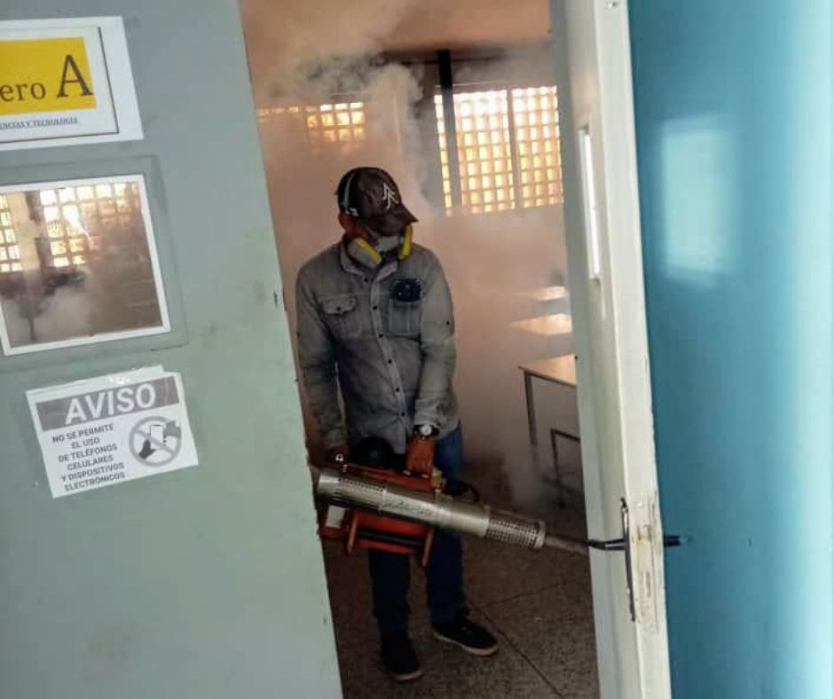 La fumigación se realizó en 10 instituciones educativas del territorio, con el fin de prevenir contagios de enfermedades transmitidas por mosquitos, garantizando la salud de niñas, niños, jóvenes y adultos que hacen vida en estos espacios educativos.